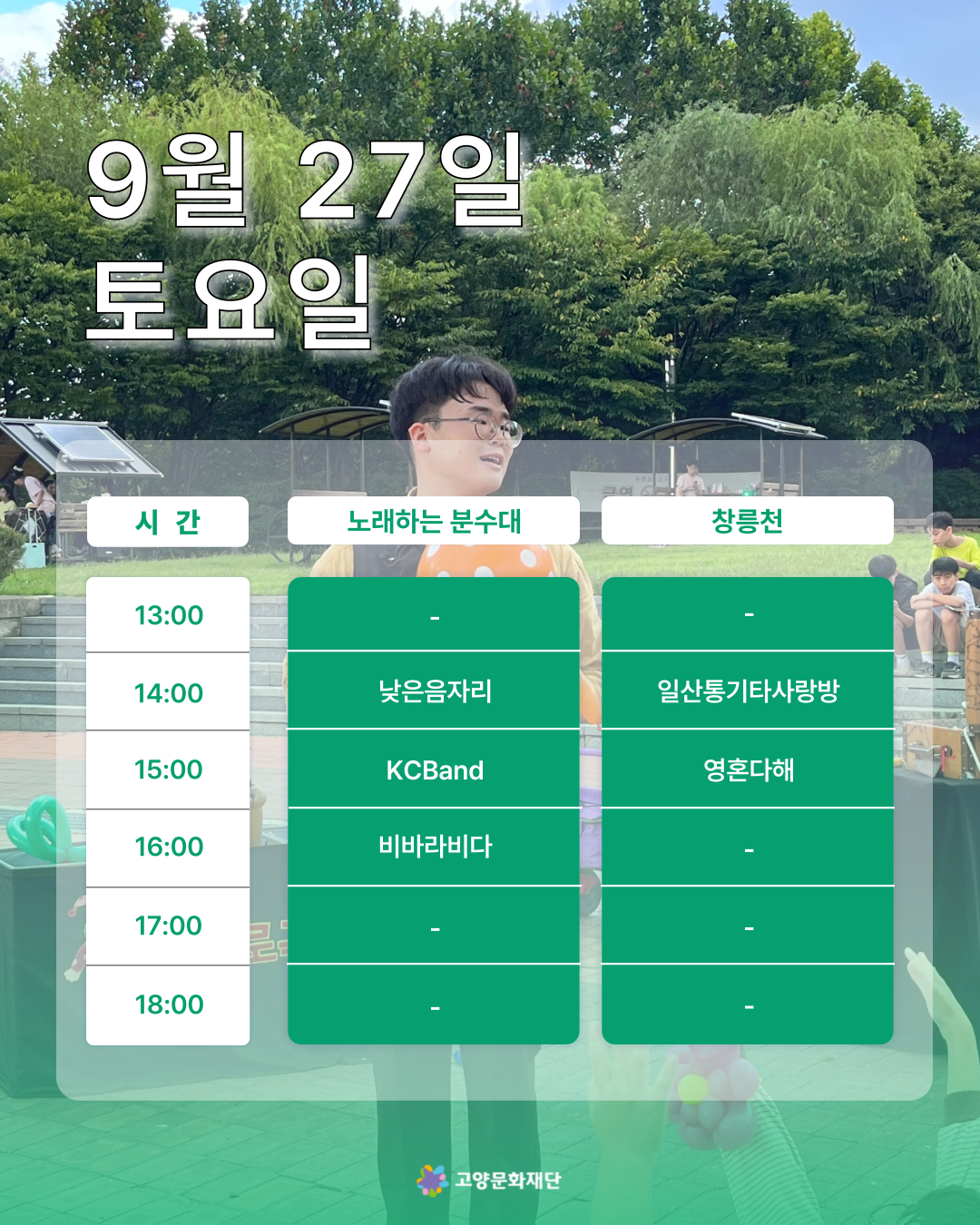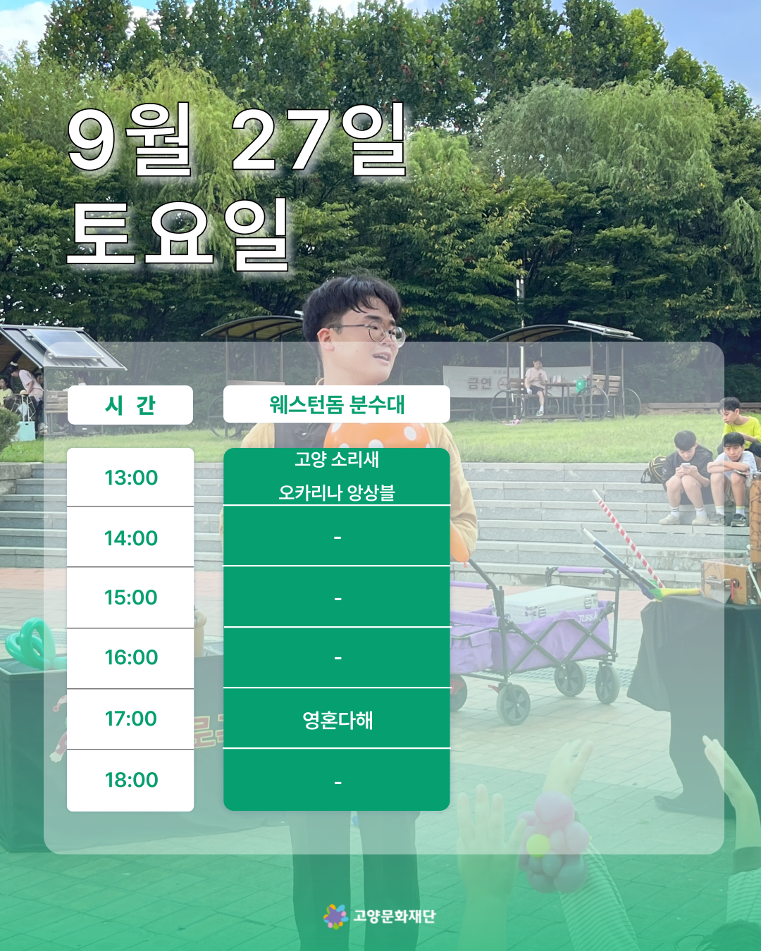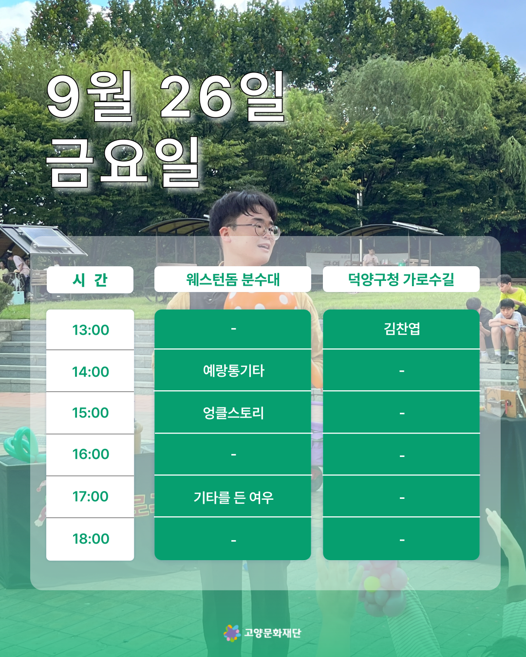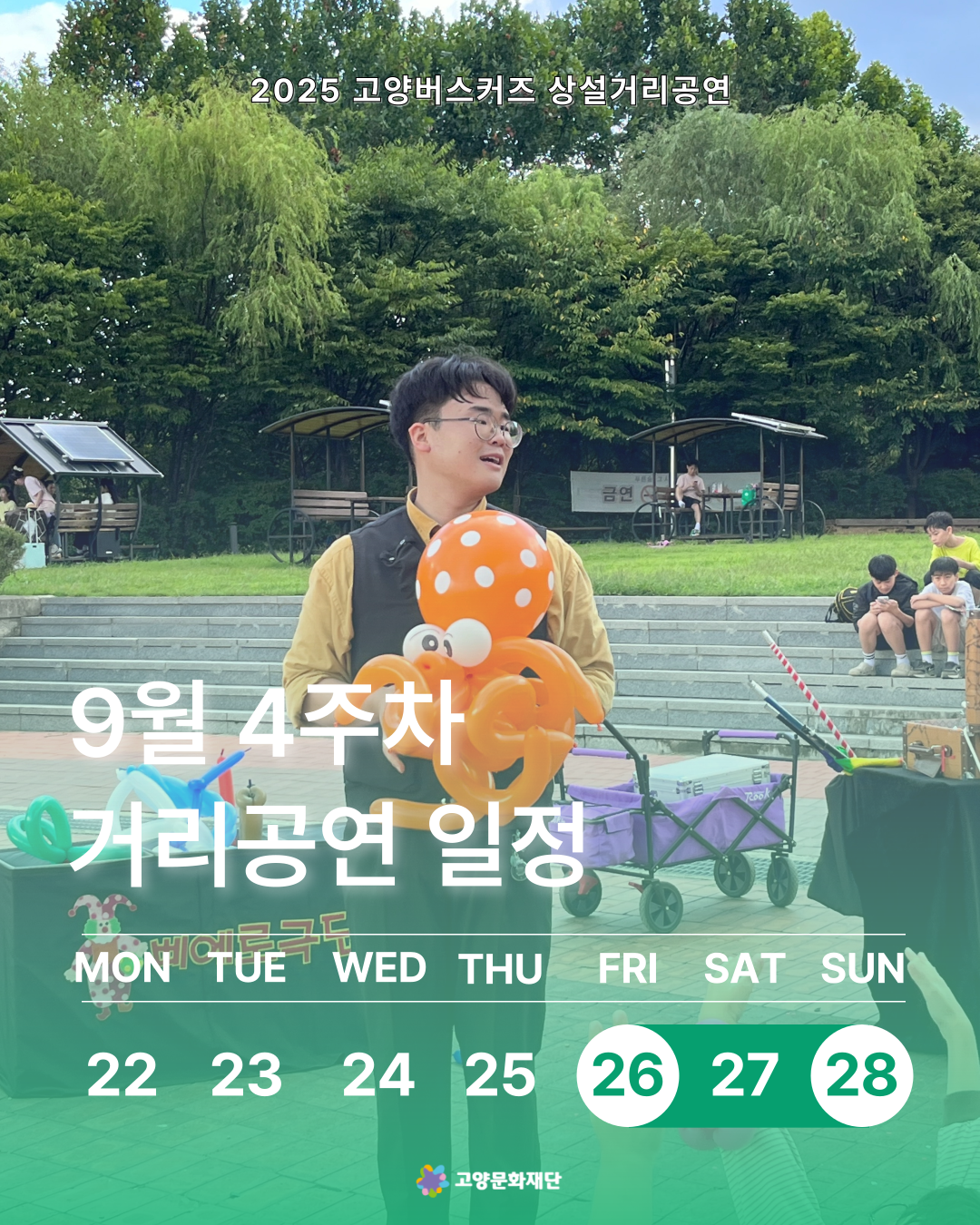 2025년 9월 넷째주 (09.26-09.28) 고양버스커즈 상설거리공연 일정 안내