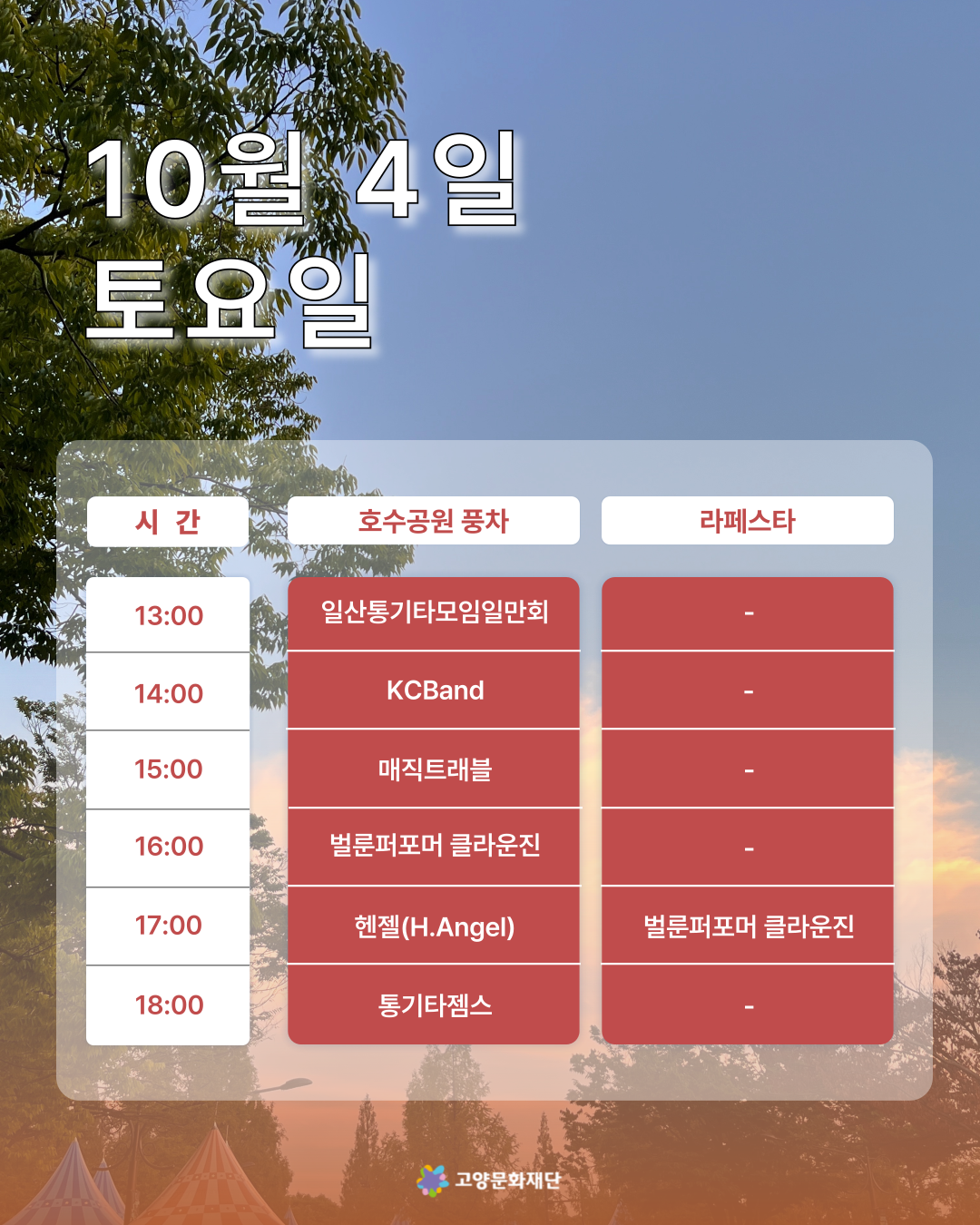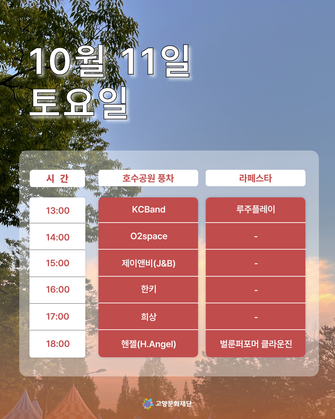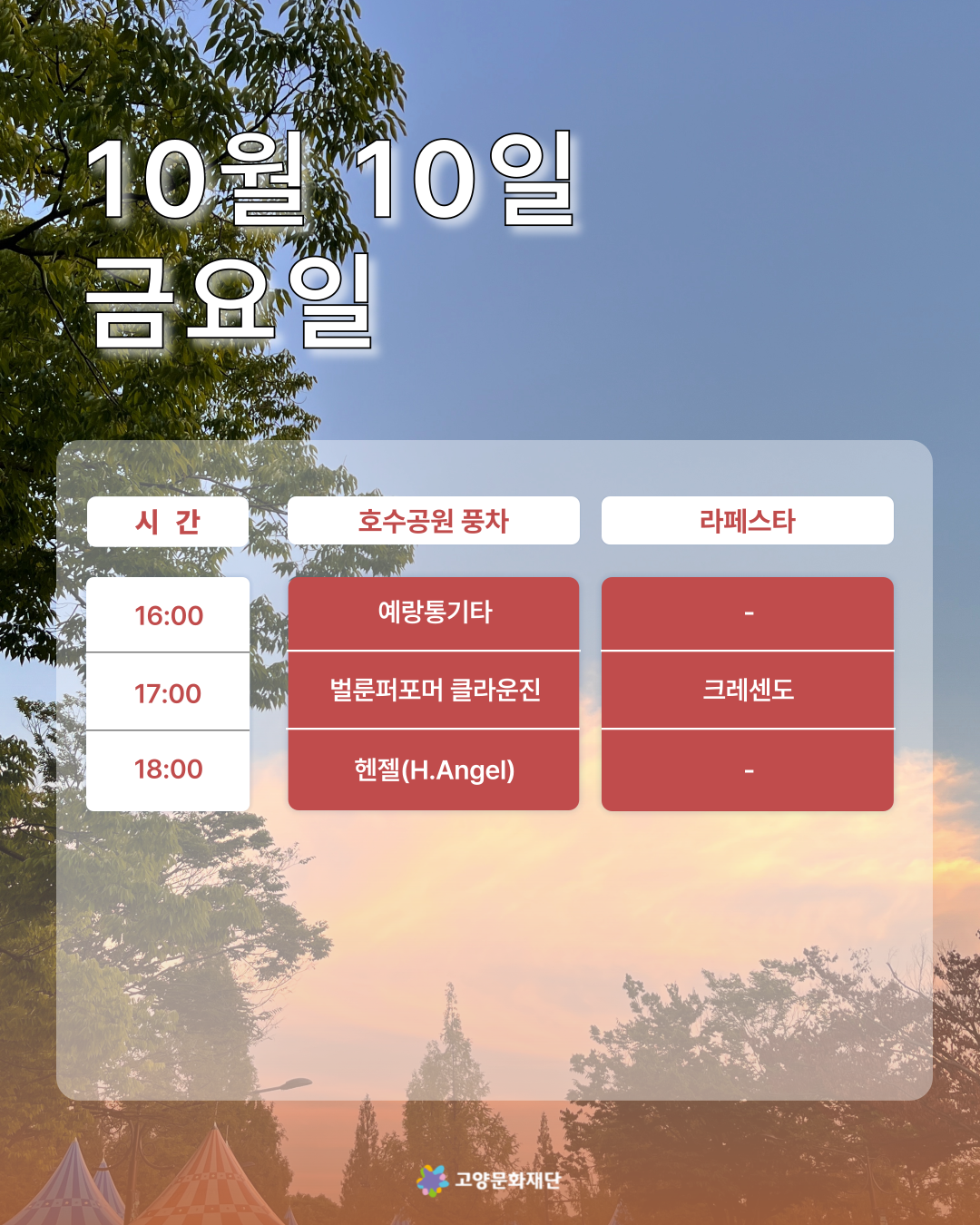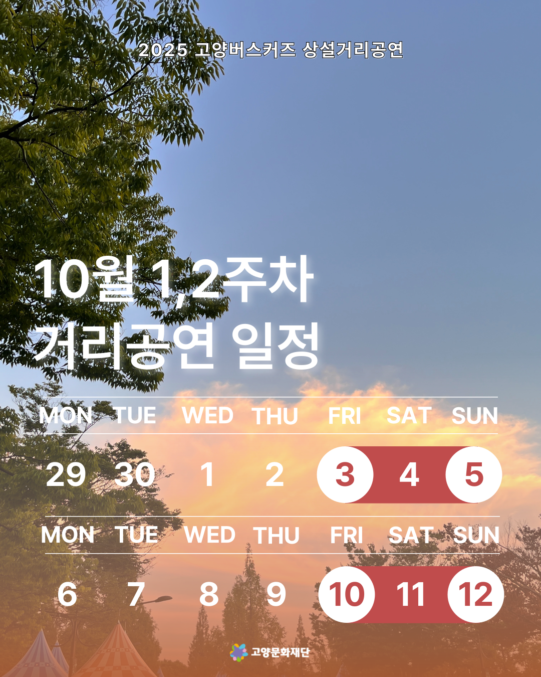 2025년 10월 첫째,둘째주 (10.03-10.05 / 10.10-10.12) 고양버스커즈 상설거리공연 일정 안내
