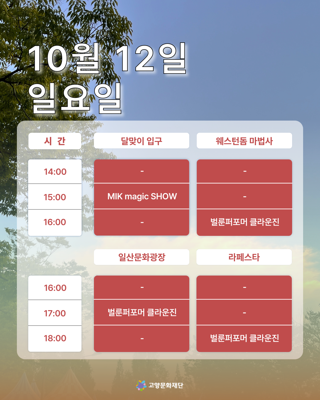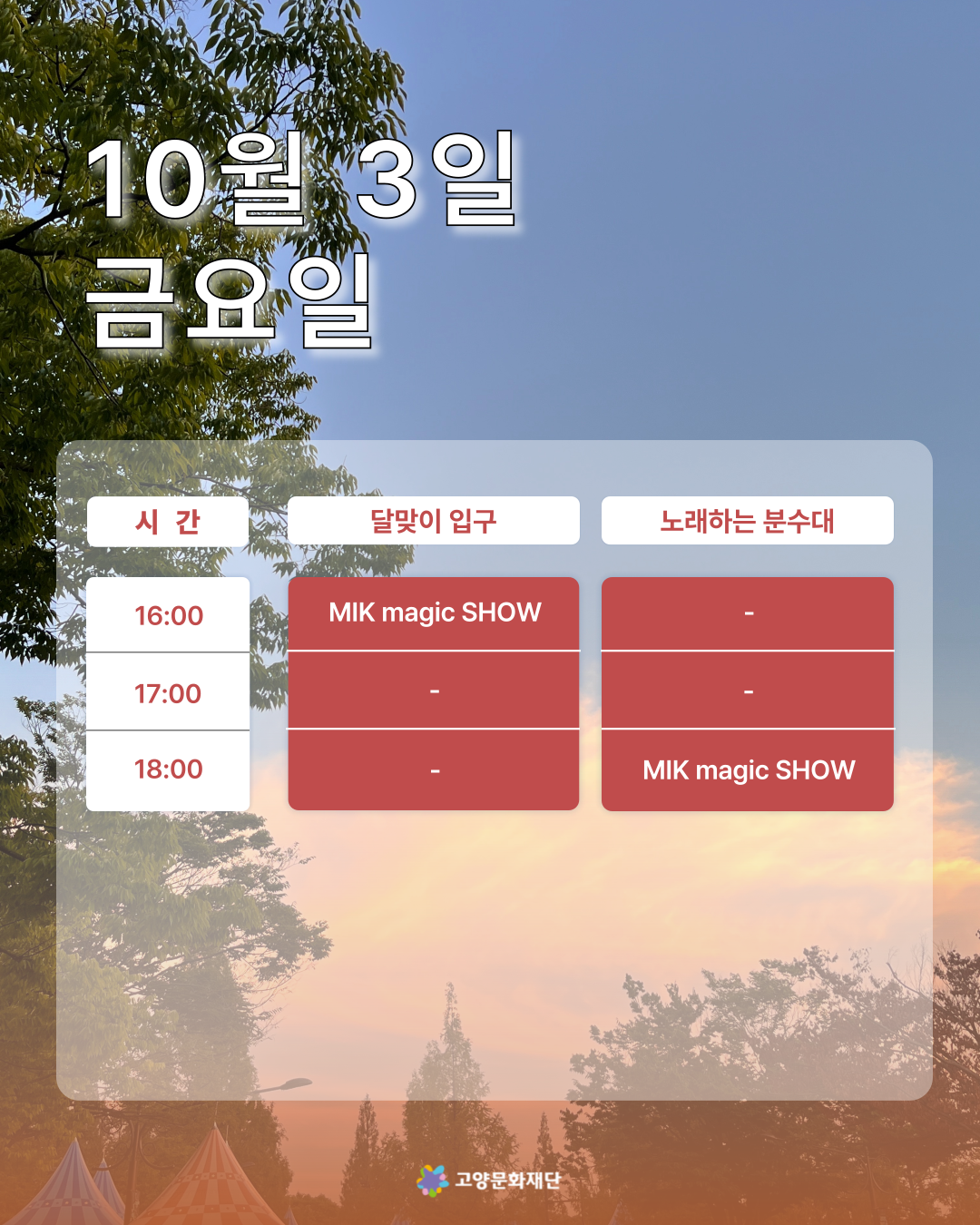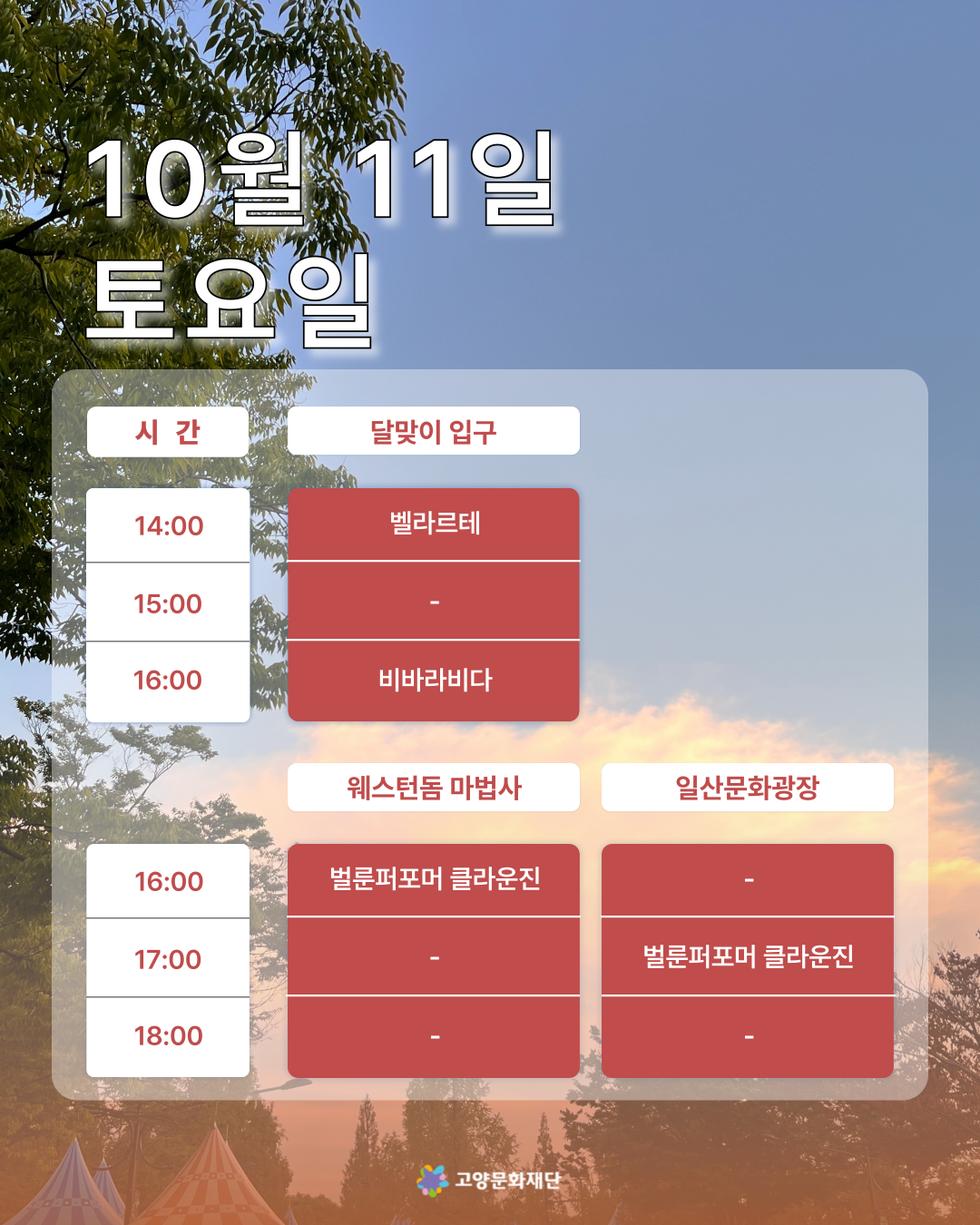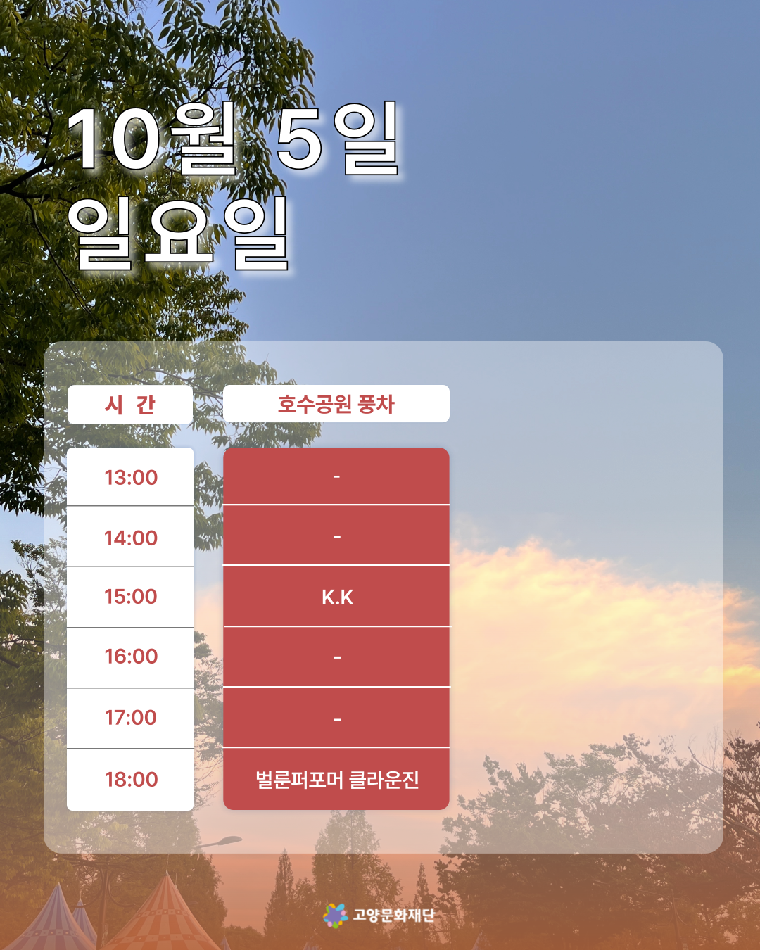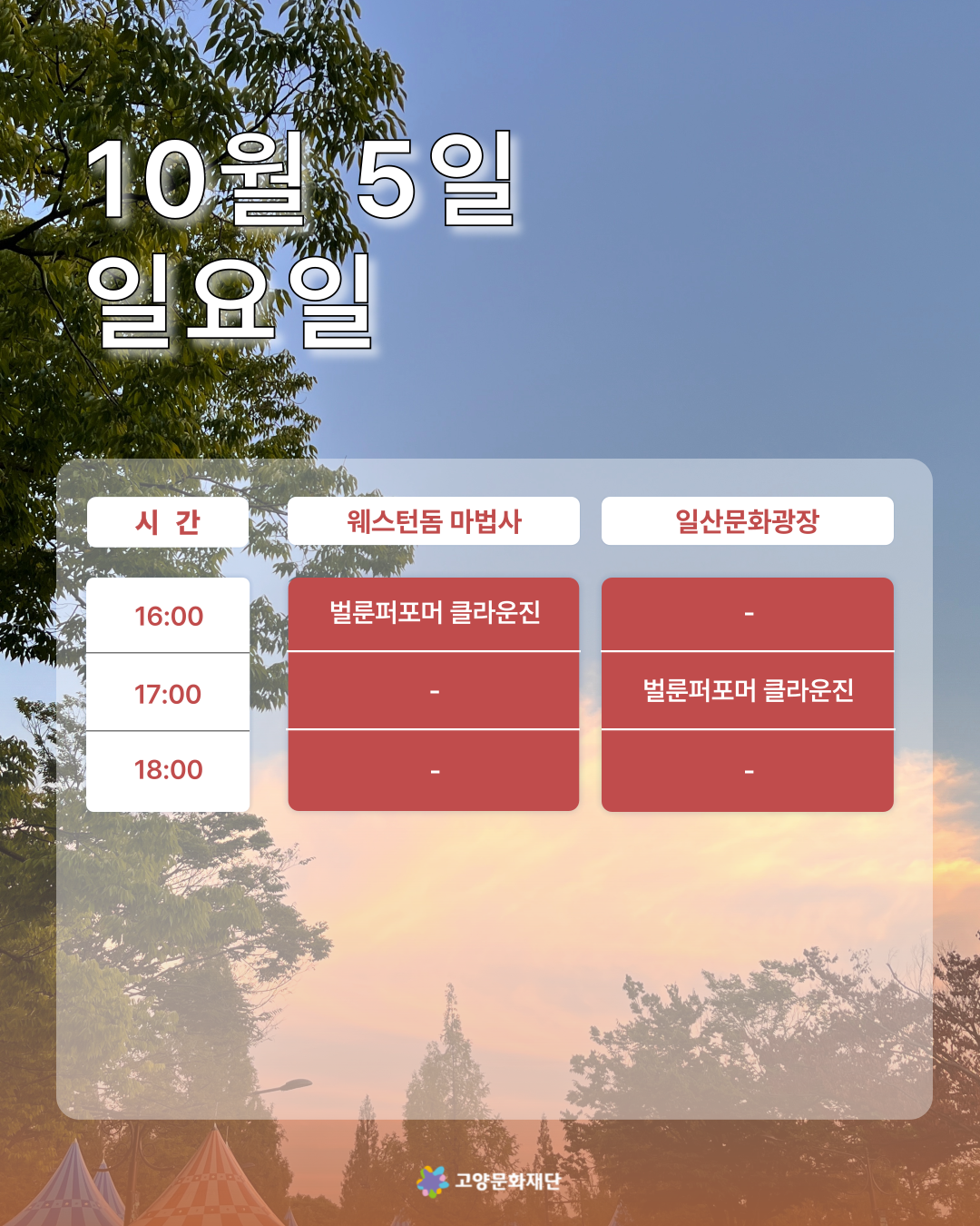 2025년 10월 첫째,둘째주 (10.03-10.05 / 10.10-10.12) 고양버스커즈 상설거리공연 일정 안내