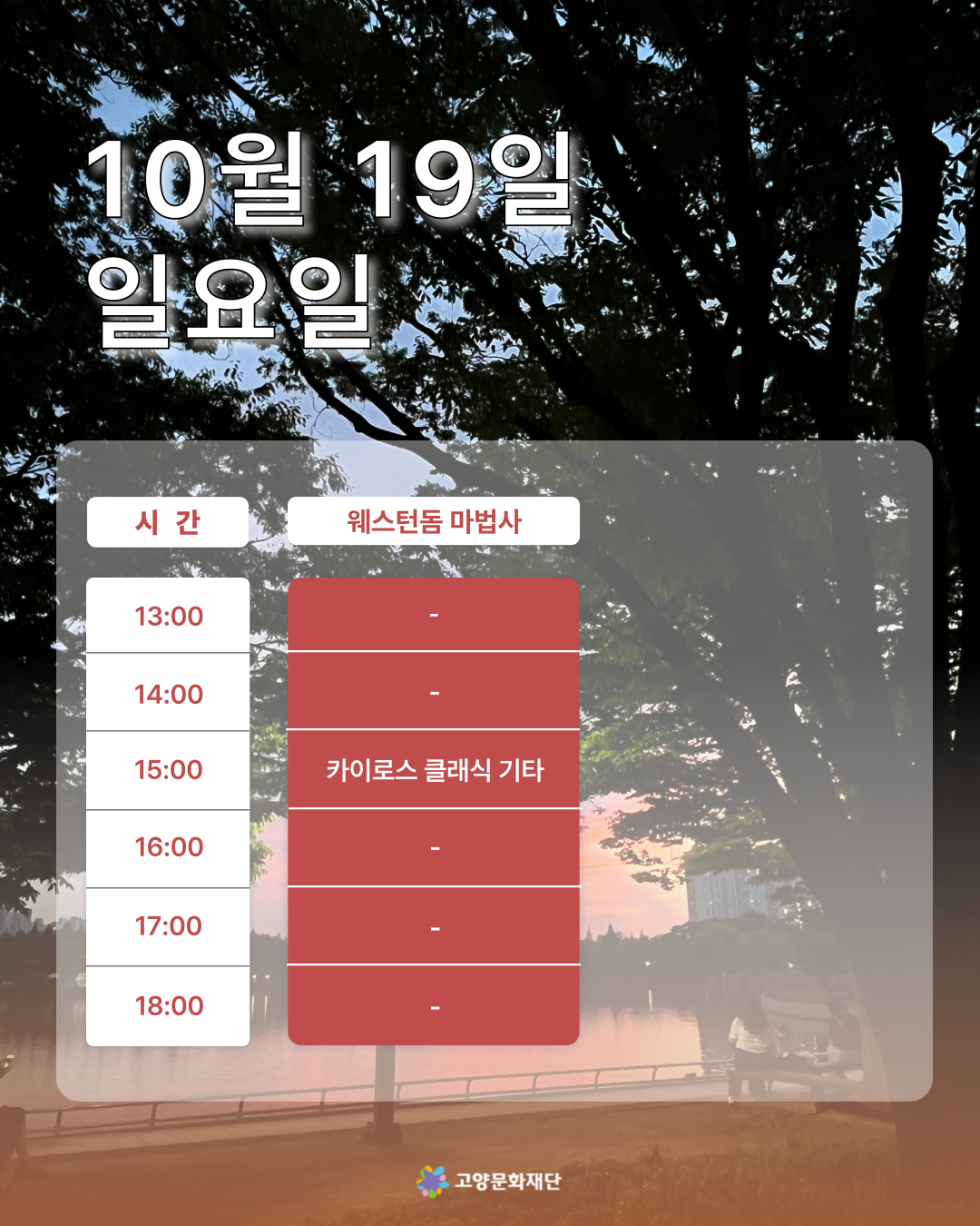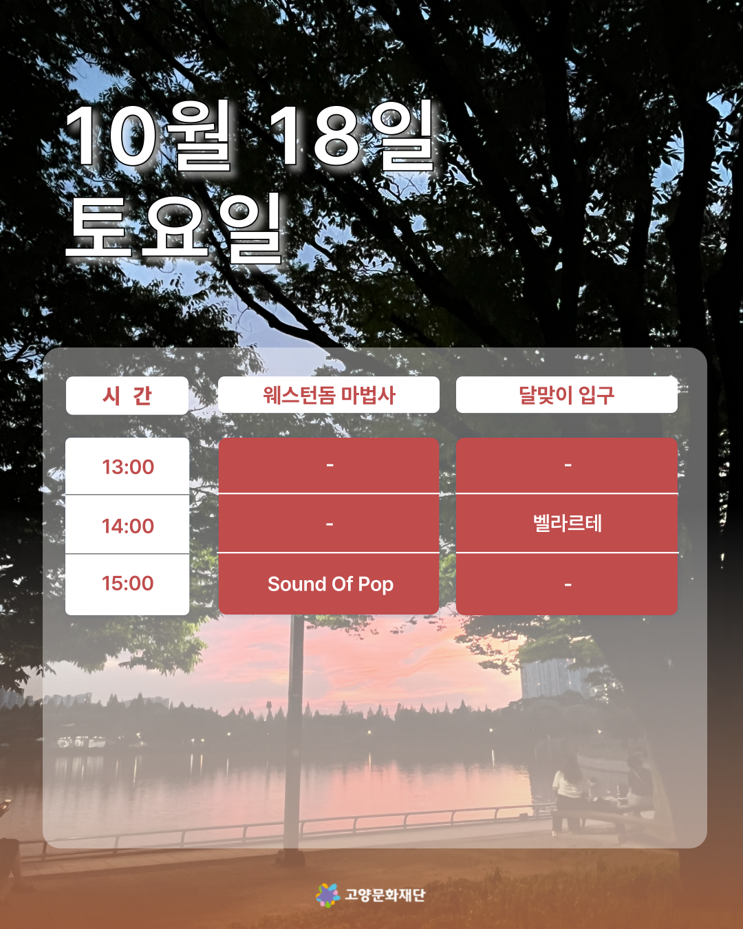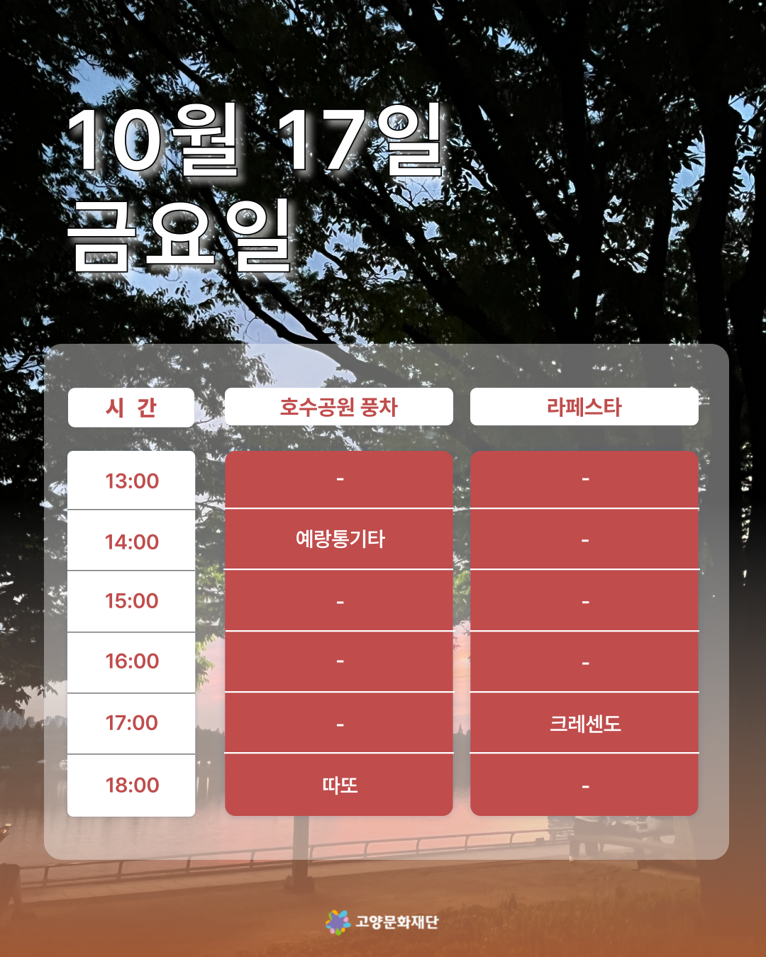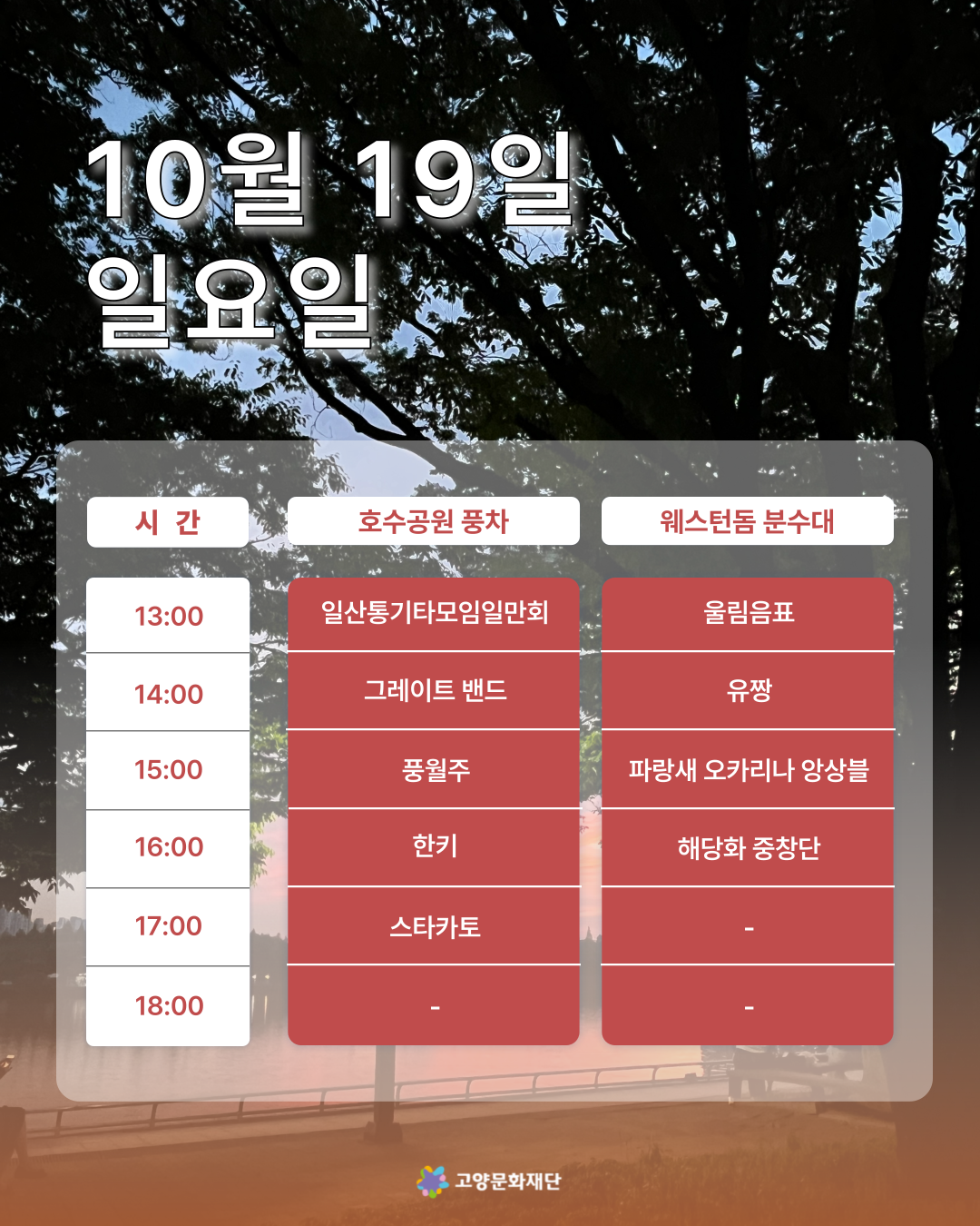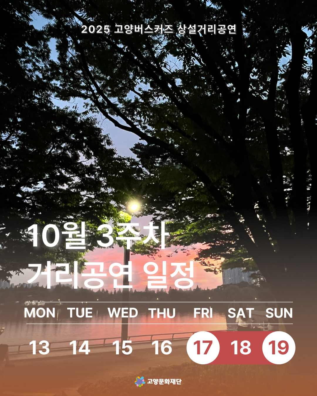 2025년 10월 셋째주 (10.17-10.19) 고양버스커즈 상설거리공연 일정 안내