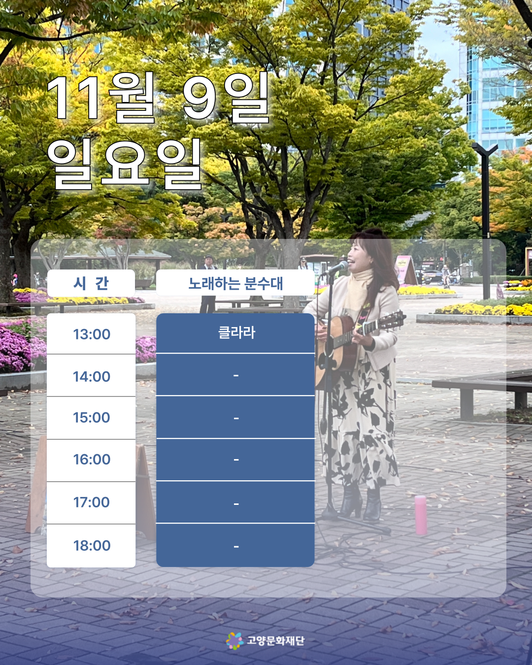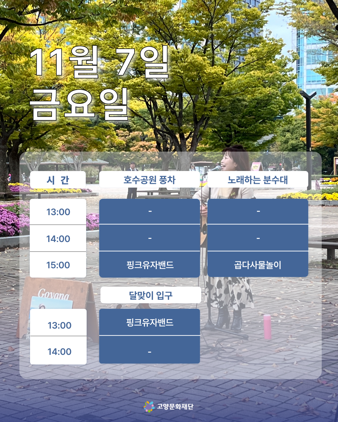 2025년 11월 둘째주 (11.07-11.09) 고양버스커즈 상설거리공연 일정 안내