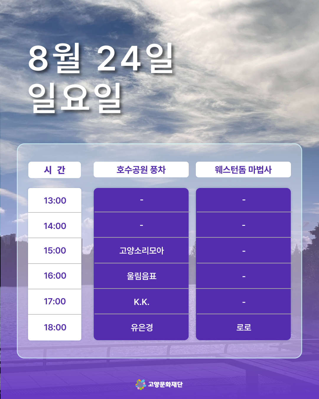 2025년 8월 넷째주 (08.22-08.24) 고양버스커즈 상설거리공연 일정 안내