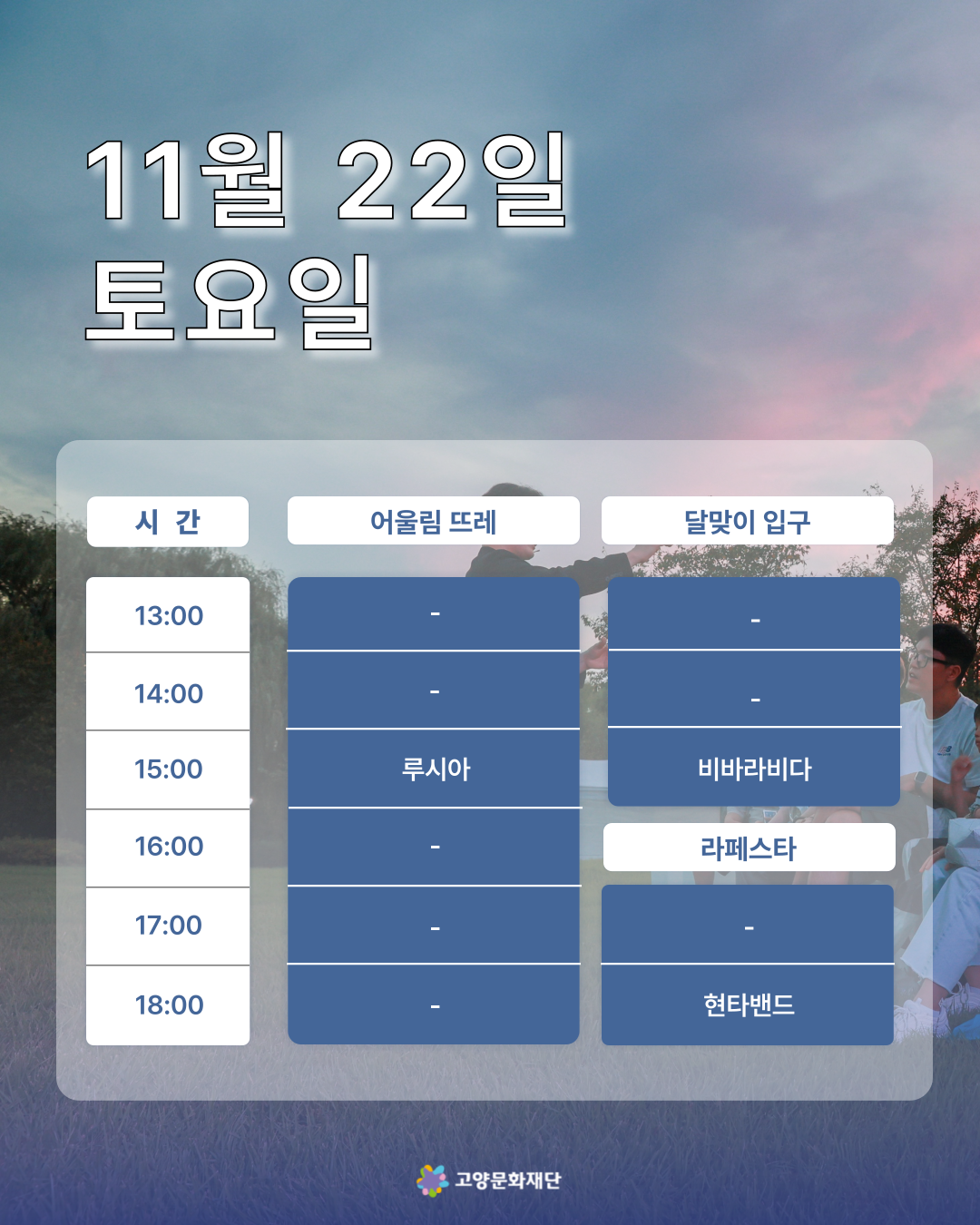 2025년 11월 넷째주 (11.21-11.23) 고양버스커즈 상설거리공연 일정 안내