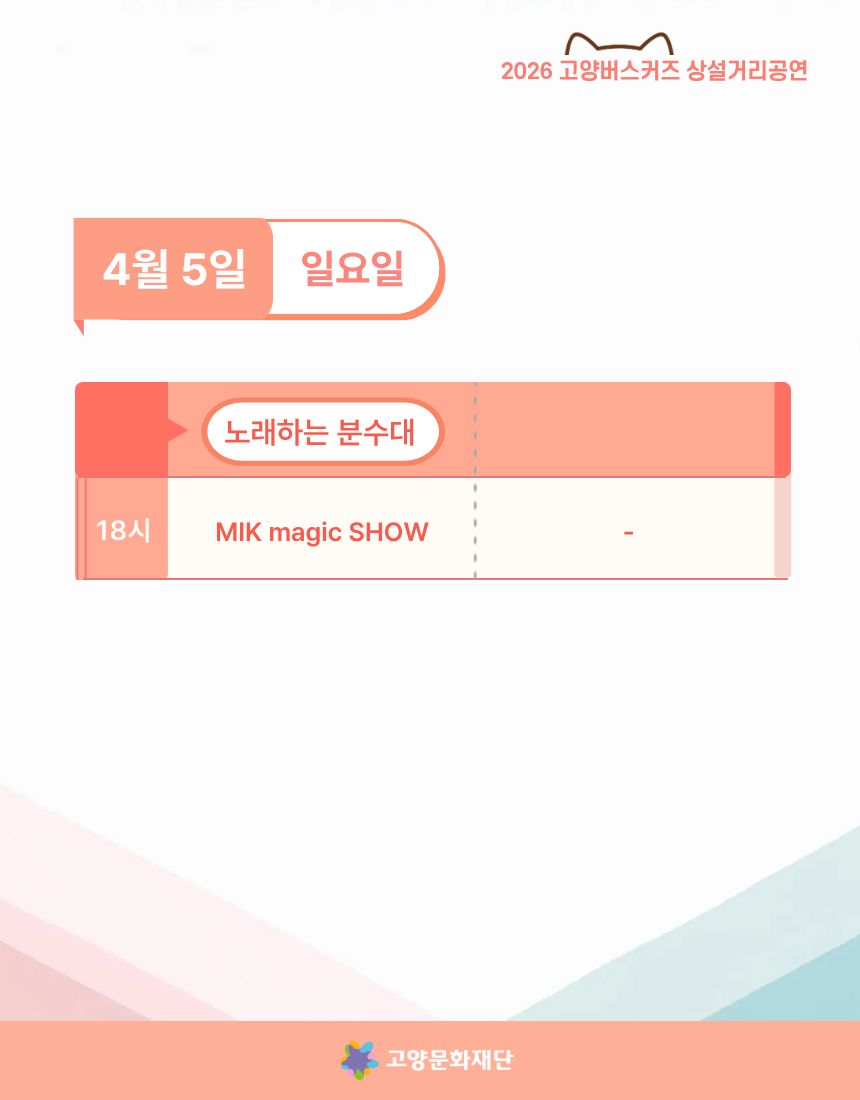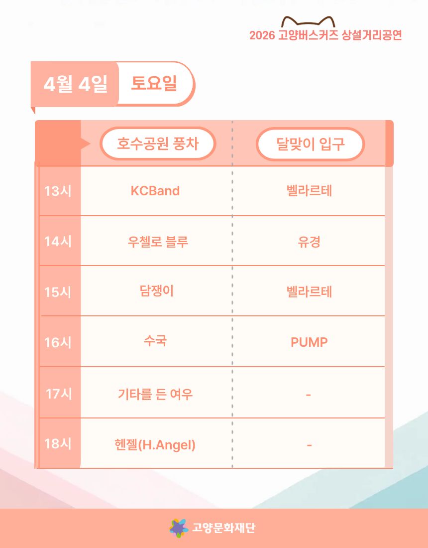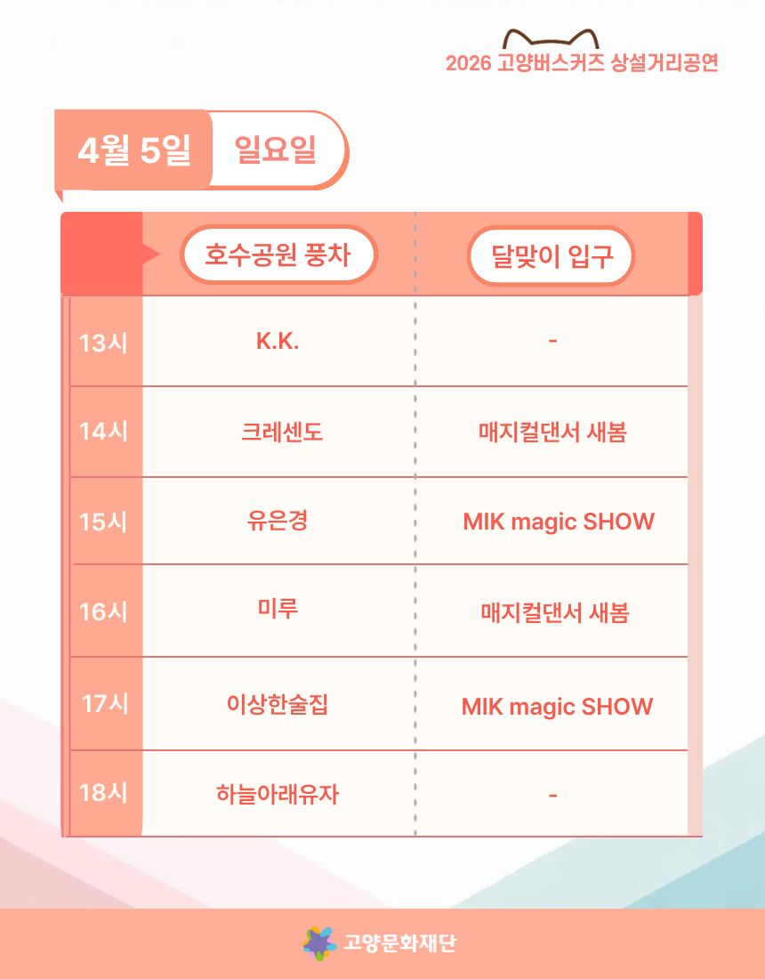 2026년 4월 첫째주 (04.03-04.05) 고양버스커즈 상설거리공연 일정 안내